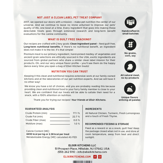 Treat your pet to the best of nature and nutrition with our Chicken Breast, Turmeric & Rosemary Treats