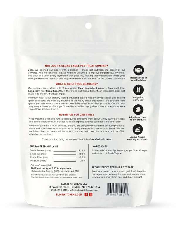 Treat your pet to the best of nature and nutrition with our Chicken Breast, Turmeric & Rosemary Treats